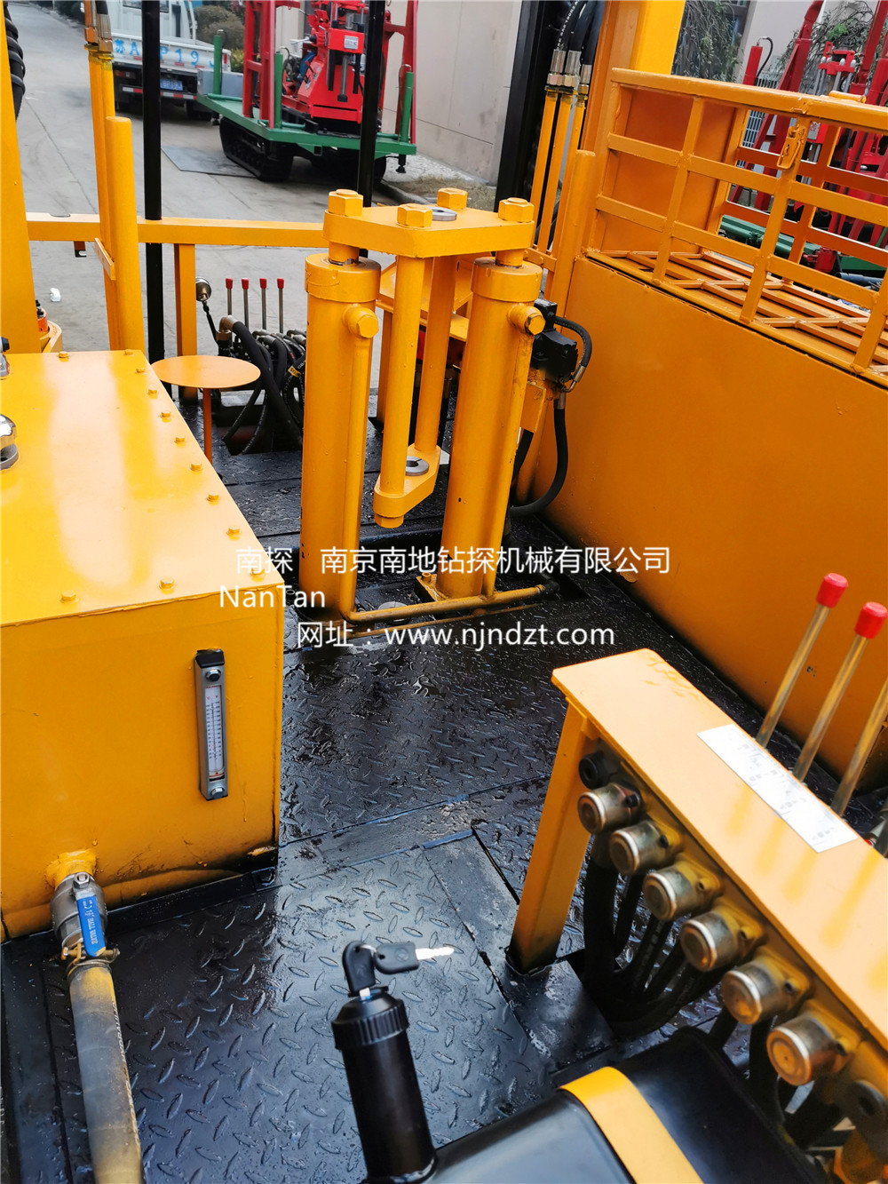 NTLPSY-L8-20T-SG型履带静力触探车由自行走履带底盘、1台四缸柴油机、20T液压静探机、自动伸缩式升高型上下车液压支撑腿系统、2组液压下锚机、控制器、平台及驾驶机构等组成,共同组装在一个机架上。
