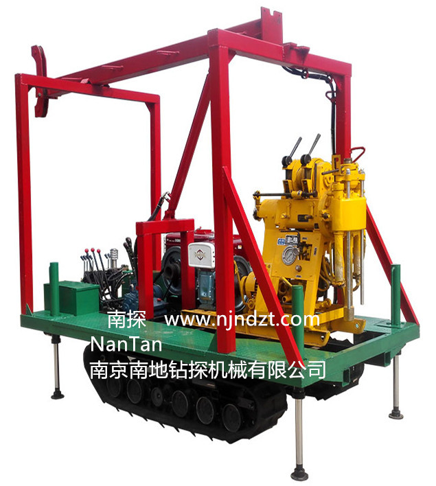 2、钻机可以选择装配底盘及钻塔:T-SJ-3型三脚架钻塔、T2-SJ-3型两轮拖挂三脚架钻塔、T2-SJ-4型可拆卸两轮底盘及人字形钻塔、T4-SJ-4型四轮拖挂底座及人字形钻塔、LP-4T-01-B(A)型履带底盘及人字形钻塔、LP-4T-02-STRZT型履带底盘及人字形全液压起落钻塔、LP-4T-02-B-SST型履带底盘及全液压伸缩式钻塔、LP-4T-02-B-STZDT型履带底盘及折叠式液压钻塔等多种钻机底盘及钻塔,也可以根据用户需求定制。