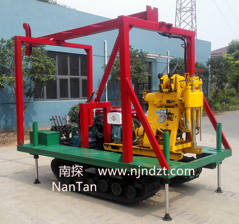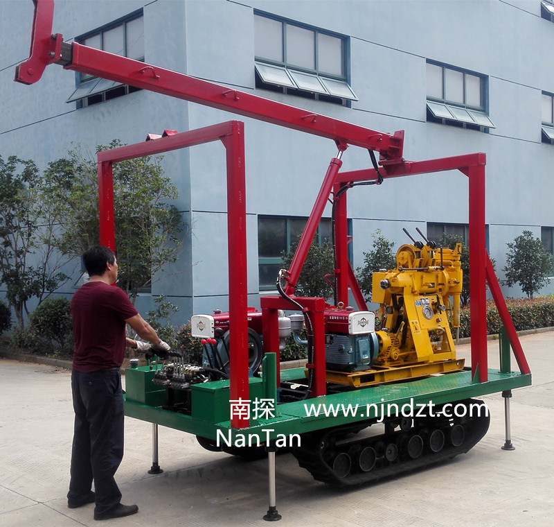 XY-1A-L-02-B-SST型履带钻机是将橡胶履带底盘、动力(柴油机或电机)、XY-1A型钻机(或XY-1A-4、XY-1A(YJ)、XY-1A-5)、钻机平台、液压支撑腿系统、全自动伸缩式液压起落架、水泵等共同组装在一个机架上。钻机一个动力(柴油机或电机),橡胶履带底盘、泥浆泵一个动力(柴油机或电机)带动,互不干扰,避免单动力变换负荷造成磨损影响施工。