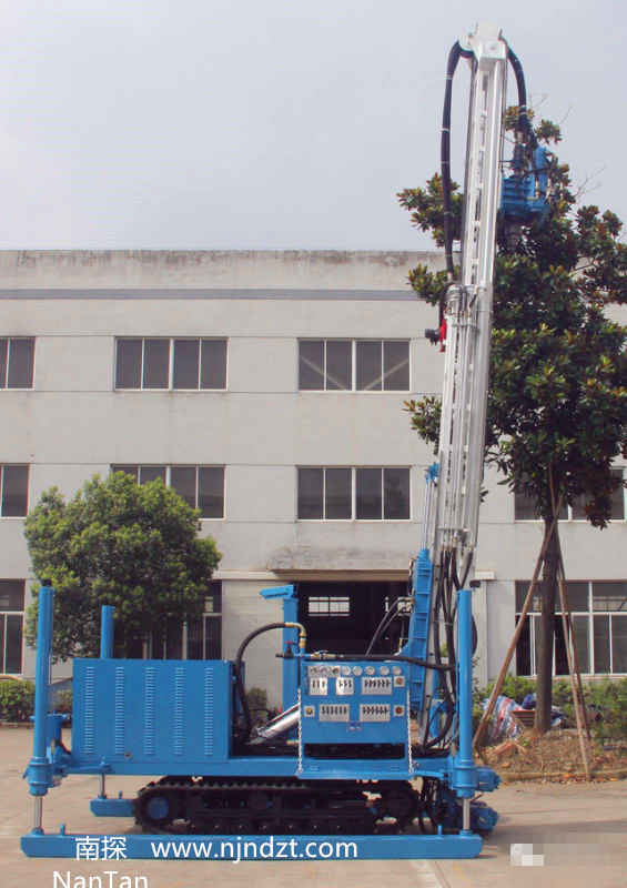 用途:主要用于钻凿水井、监测井、地热空调孔施工、国防工程、抗浮锚杆、斜拉锚杆、高压旋喷等钻孔作业;同时适用于水电站工程、铁路、公路、城市地基等岩土工程中的大孔径垂直孔施工;灌浆加固孔;小型基桩孔;微型桩等。钻机配备相应的钻具后可以进行多种工艺,如气动潜孔锤钻进、空气泡沫钻进、气举反循环钻进、长螺旋钻进、泥浆循环钻进、偏心跟管钻进、牙轮钻头钻进、液动锤钻进等。