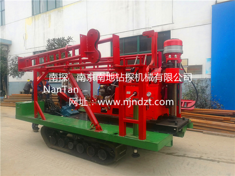 1、该钻机装有橡胶履带行走机构,经分动箱齿轮驱动履带变速箱,爬坡能力强,使整机装卸、搬迁极为方便,由于是橡胶履带对地面无破坏,所以该钻机在城市中施工带来方便。