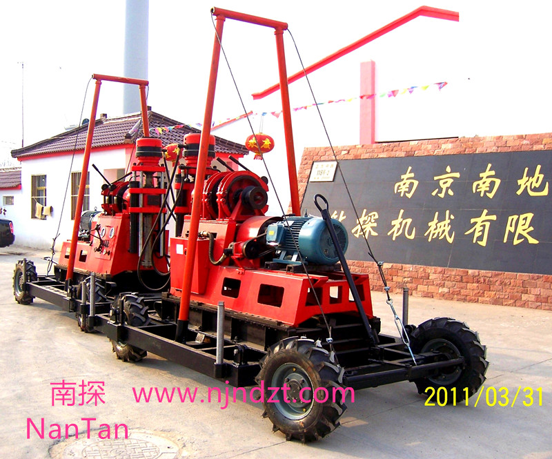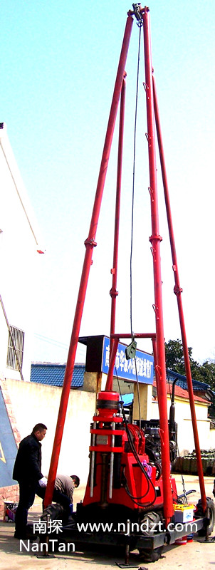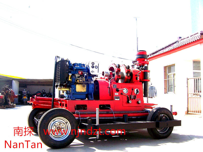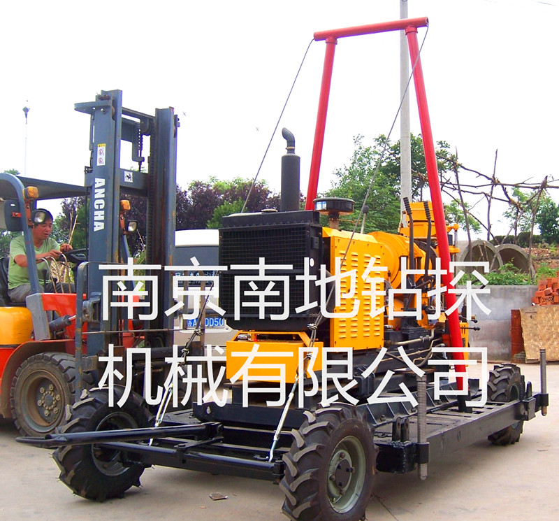 特点:利用卷扬机可上下汽车、自起落塔、爬坡和移孔,是目前较为科学、经济型钻塔,拖挂移孔方便、安全平稳。