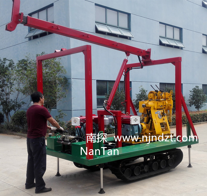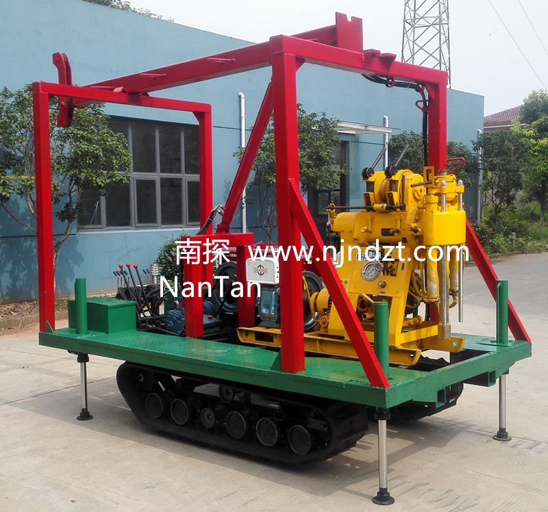 一、适用范围:该履带底盘承载重量达4T,可以装载各种小型钻机,如:XY-1-1、XY-1、XY-1A、XY-1A(YJ)、XY-1A-4、XY-1A-5、XY-1B、XY-1B-1、XY-1B-2、XY-200、XY-200(YJ)、XY-200B、XY-200B-1、XY-200B-2、XY-200B-3、GXY-1、GXY-1A、GXY-1B、GXY-1C、GXY-2K、GXY-2Q、GXY-200B、GYQ-200、GYQ-200A、GXY-2C、GK180、KD100-4、KD150等,并可同时装载BW160、BW160A、BW200或BW200A型泥浆泵,具有液压起落钻塔、行走方便等特点,广泛适用于公路、铁路、水电、桥梁、坝基等的工程地质勘察、地质岩芯钻探、物理勘察、小型灌浆孔、爆破孔、水井孔和空调孔的钻进。