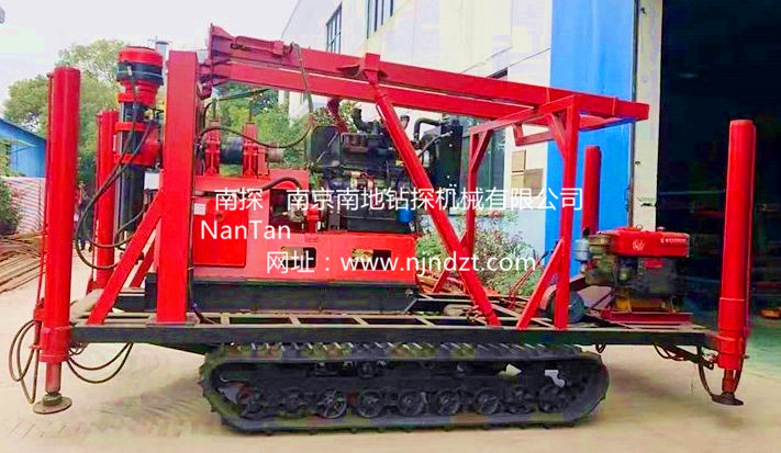 钻机机组由履带底盘、柴油机、升高型液压支腿、钻机、液压起落钻塔组成,共同组装在一个机架上。钻机可以选择柴油机或电动机、履带底盘及液压支腿由独立柴油机带动、互不干涉。