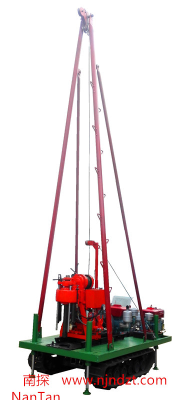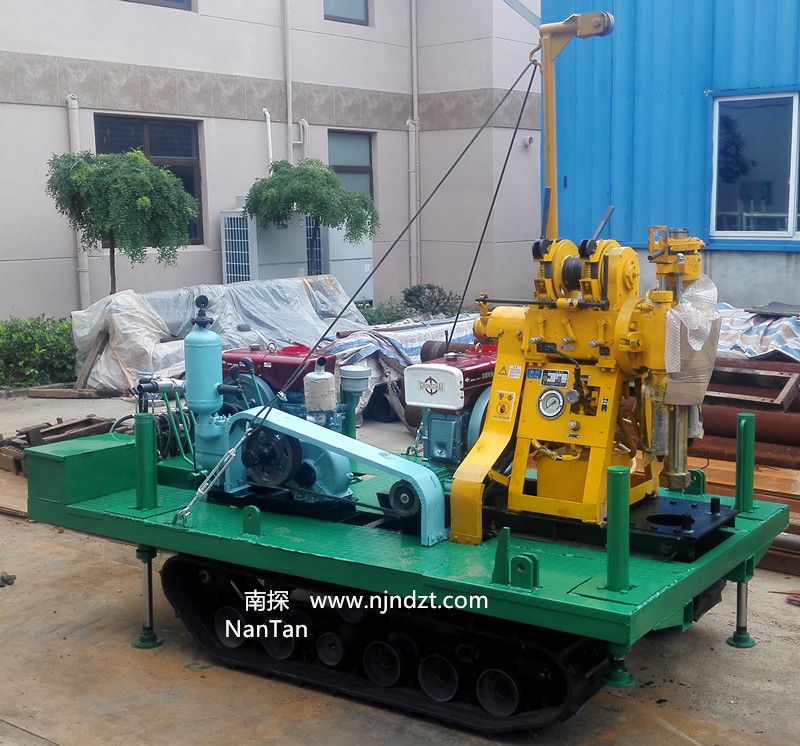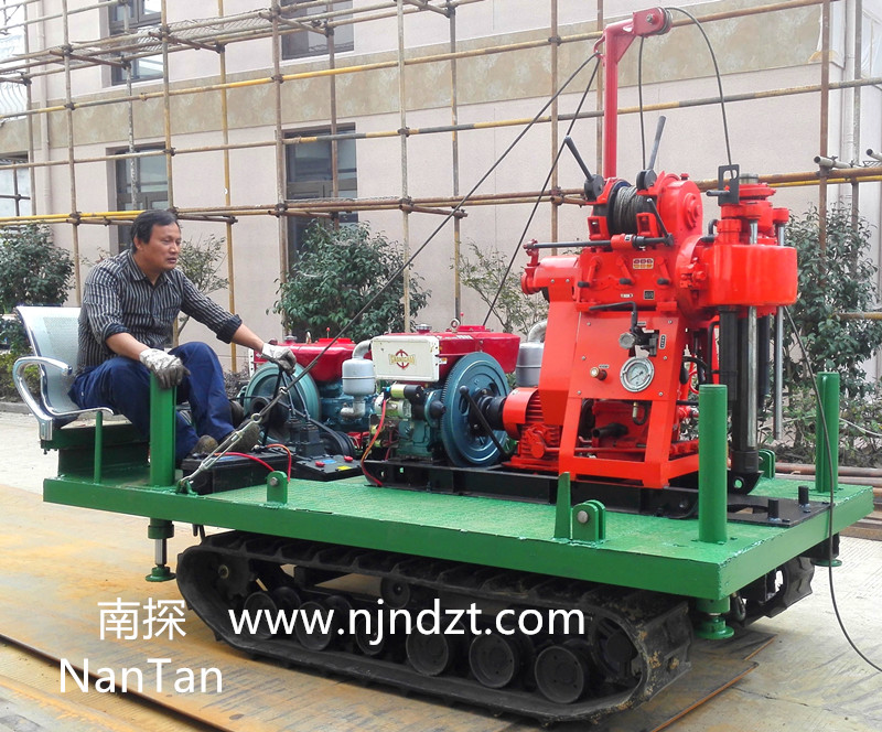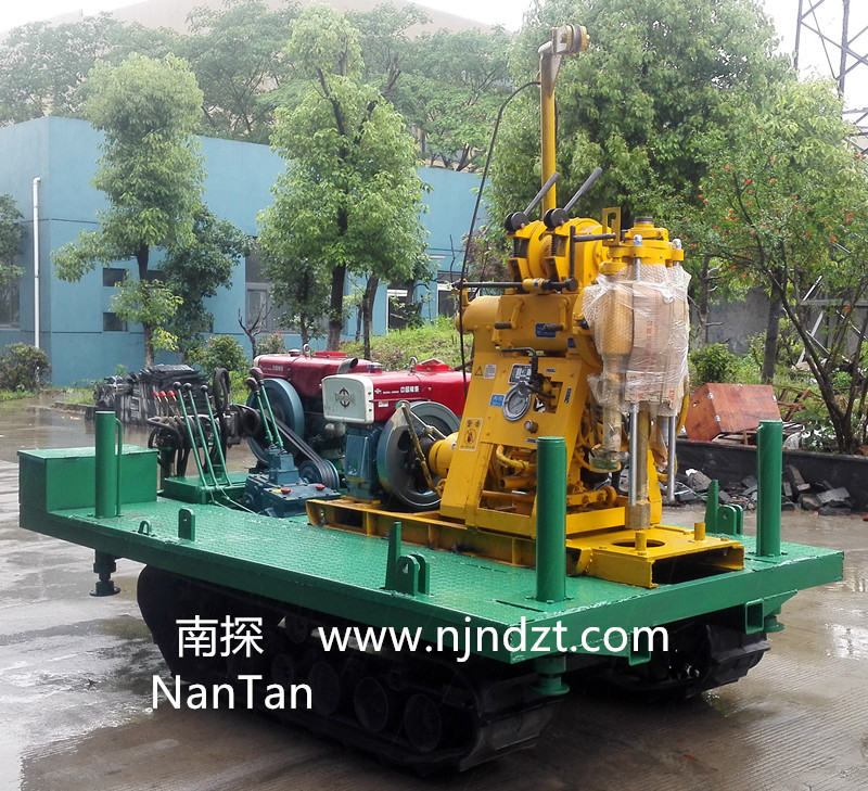 该履带底盘承载重量达4T,可以装载各种小型钻机,如:XY-1-1、XY-1、XY-1A、XY-1A(YJ)、XY-1A-4、XY-1A-5、XY-1B、XY-1B-1、XY-1B-2、XY-200、XY-200(YJ)、XY-200B、XY-200B-1、XY-200B-2、GXY-1系列、GXY-2Q、GXY-200B、GYQ-200、GYQ-200A、GK180、GXY-2K、GXY-2C等100-300米钻机,并可同时装载BW160、BW160A、BW200或BW200A型泥浆泵,具有利用钻机卷扬机起落钻塔、行走方便等特点,广泛适用于公路、铁路、水电、桥梁、坝基等的工程地质勘察、地质岩芯钻探、物理勘察、小型灌浆孔、爆破孔、水井孔和空调孔的钻进。