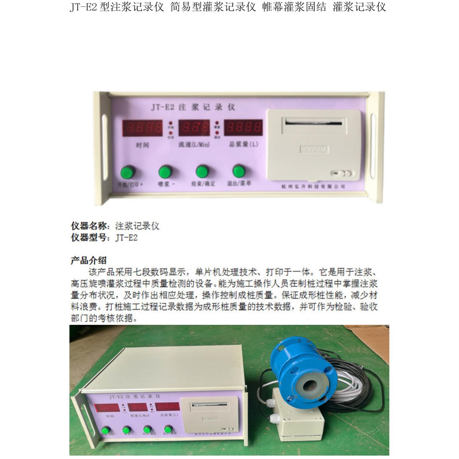 JT-E2灌浆记录仪、JT-V9型灌浆记录仪