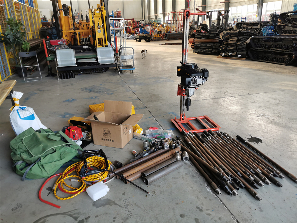 1、取样钻机:含汽油发动机、钻进装置,链条塔式支架。