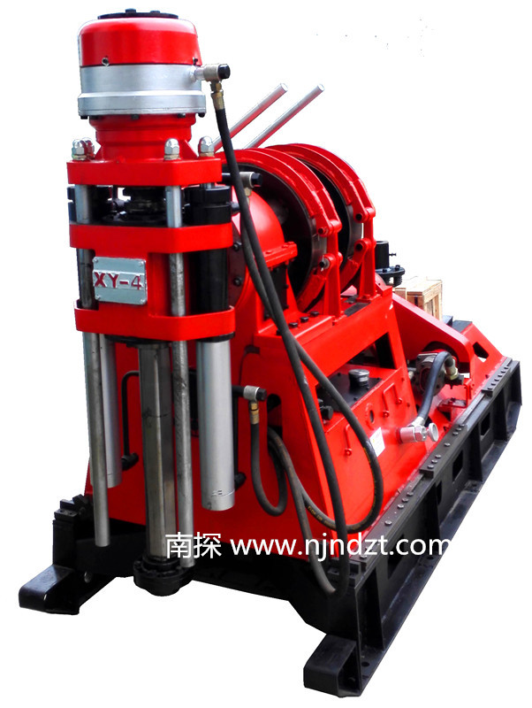 XY-4型钻机是机械传动液压给进的岩芯钻机,用42mm钻杆能钻1000米的孔。主要用于地表及坑道对固体矿床的金刚石、合金钻探,可用于工程地质勘察及地下水勘探,浅层石油,天然气勘探、堤坝灌注、坑道通风、排水钻探等工程孔钻进。
