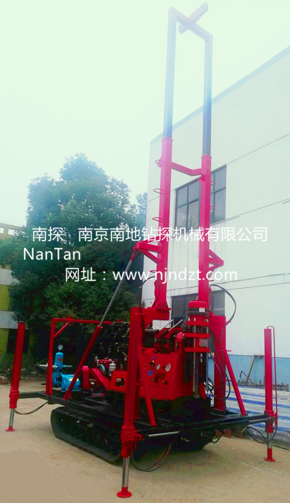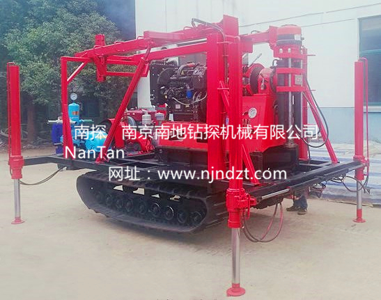 钻机机组由履带底盘、柴油机、升高型液压支腿、钻机、液压起落钻塔组成,共同组装在一个机架上。钻机可以选择柴油机或电动机、履带底盘及液压支腿由独立柴油机带动、互不干涉。