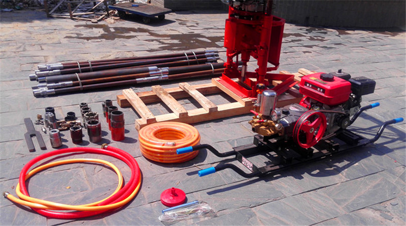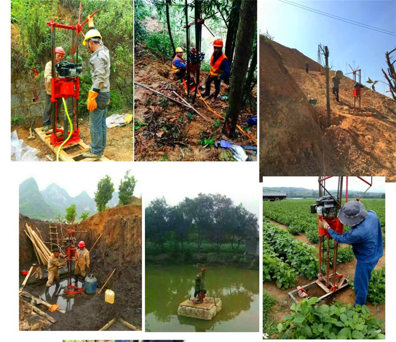 可以2人操作的取芯钻机!钻探深度可达30米!采用轻便的汽油机(或电动机可选)作为动力,分体式轻便实用,搬迁十分便利,带支架稳定可靠,满足野外车辆无法进入地区时用;钻机操作简单,易学易懂。可实现合金、金刚石钻头钻进及麻花螺旋钻进和不取芯三叶合金钻头、复合片不取芯钻头引孔钻进的需求。